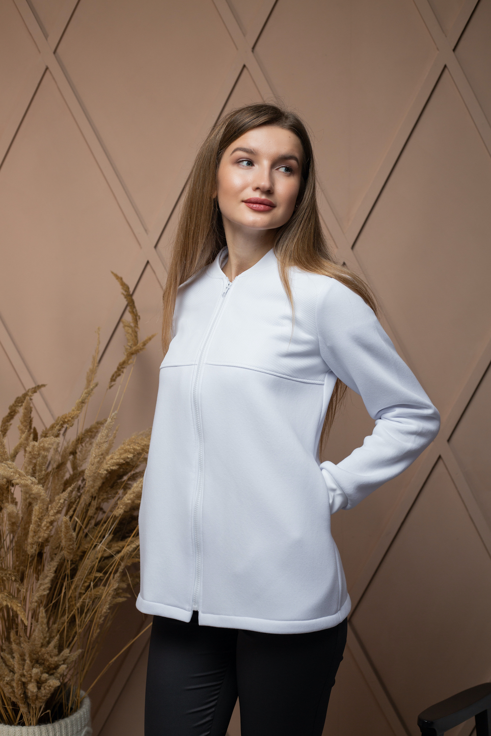 Ця кофта-бомбер — ідеальний вибір для лікарів, медсестер, косметологів та всіх, хто потребує теплий, функціональний та сучасний робочий одяг. Вона гармонійно поєднується як із медичними штанами, так і з повсякденними образами.
